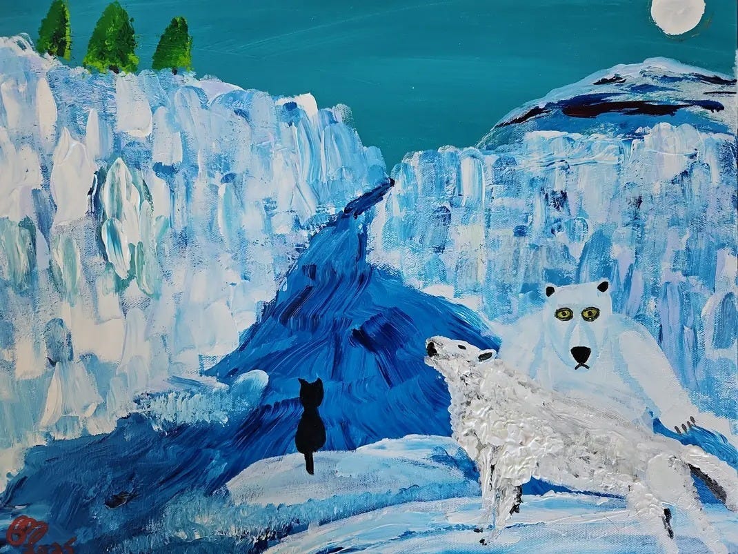 Jack the adventurous cat explores the Saguenay Fjord and encounters a lost wolf and a polar bear in search of food. Together, they discover a secret passage to new horizons, illustrating the strength of friendship.