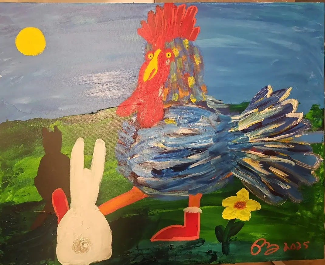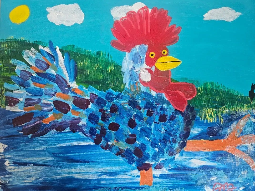 Clémentin, the water-feathered rooster, makes his very first appearance alongside Jack the Cat. In this poetic tale inspired by my naïve art universe, the river becomes a vessel of memory and legends.
