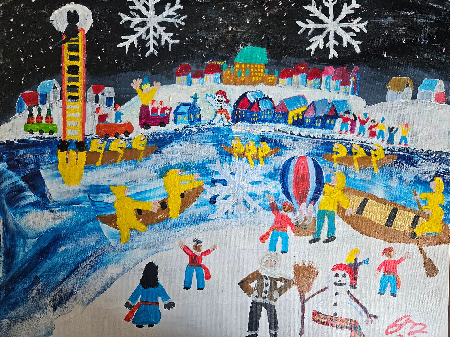 Ancien dirigeant d’entreprise devenu peintre, je s’inscrit dans la tradition des artistes autodidactes qui transforment leur imaginaire en récits visuels. Inspiré notamment par Maud Lewis, Arthur Villeneuve et Bradford Naugleur, il crée aujourd’hui des tableaux où les couleurs vives et les compositions foisonnantes invitent à la découverte.